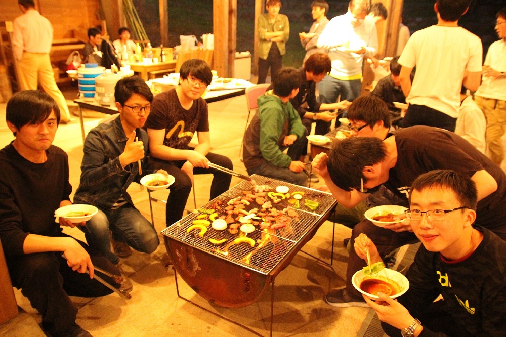 Specifically, it includes sightseeing, presentation, BBQ, spring, night talk, and games! In a word, it is quite amazing and lots of fun. You get the chance to see the other sides of your lab mates. And we drink and talk. Professors also joint us.